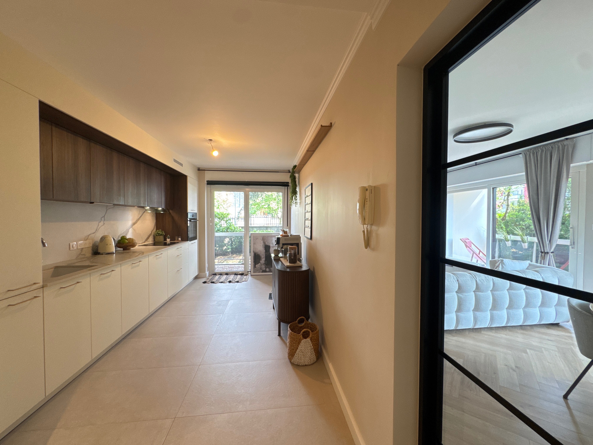 Dès l’entrée, le charme opère. Le parquet en pointe de Hongrie apporte une touche d’authenticité et d’élégance à l’ensemble. Le séjour spacieux s’ouvre sur un grand balcon filant, la cuisine neuve, entièrement équipée, allie modernité et fonctionnalité.