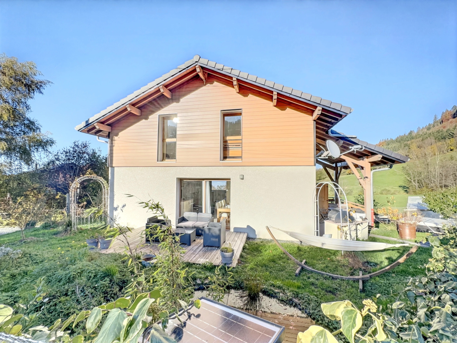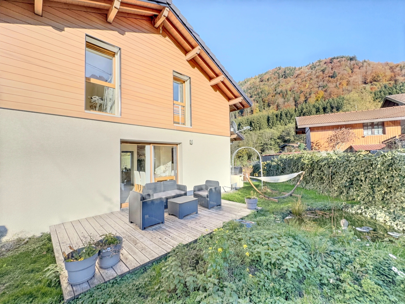 Un cadre de vie exceptionnel et privilégié sera assuré aux nouveaux propriétaires de cette magnifique maison moderne d'environ 100 m2 (127 m2 en surface utile) nichée sur la commune d'Orcier, à dix minutes des commodités, commerces et du Leman express. Si vous êtes en quête d'un environnement en plein coeur de la nature, cette maison vous séduira sans aucun doute ! Depuis votre pièce à vivre, sur votre terrasse ou encore dans le jaccuzzi, vos yeux profiteront d'un spectable quotidien grâce à l'étendue de champs à perte de vue, le Lac Léman en arrière plan et les montagnes faisant d'elle un vrai petit coin de paradis ! Outre son positionnement idyllique, elle vous comblera également à l'intérieur du fait de sa modernité, son agencement et ses volumes. Une pièce à vivre baignée de lumière avec au centre de celle-ci un pôele à bois pour passer de douces soirées d'hiver au coin du feu, 3 chambres et un bureau pour l'espace nuit. Pour les périodes plus estivales, tout est prévu à l'extérieur pour vous divertir, terrain de pétanque, barbecue, sauna, de multiples arbres fruitiers.. vous l'aurez compris ce ne sont pas les atouts qui manquent à cette maison. Un sous-sol complet complète ce bien. Alors, si vous êtes amoureux de la nature en recherche de votre futur lieu de vie, venez vite la découvrir ! Honoraires à la charge du vendeur. DPE : B GES : A Estimation des coûts annuels d'énergie : entre 570€ et 820€ Les informations sur les risques auxquels ce bien est exposé, sont disponibles sur le site Géorisques : www.georisques.gouv.fr