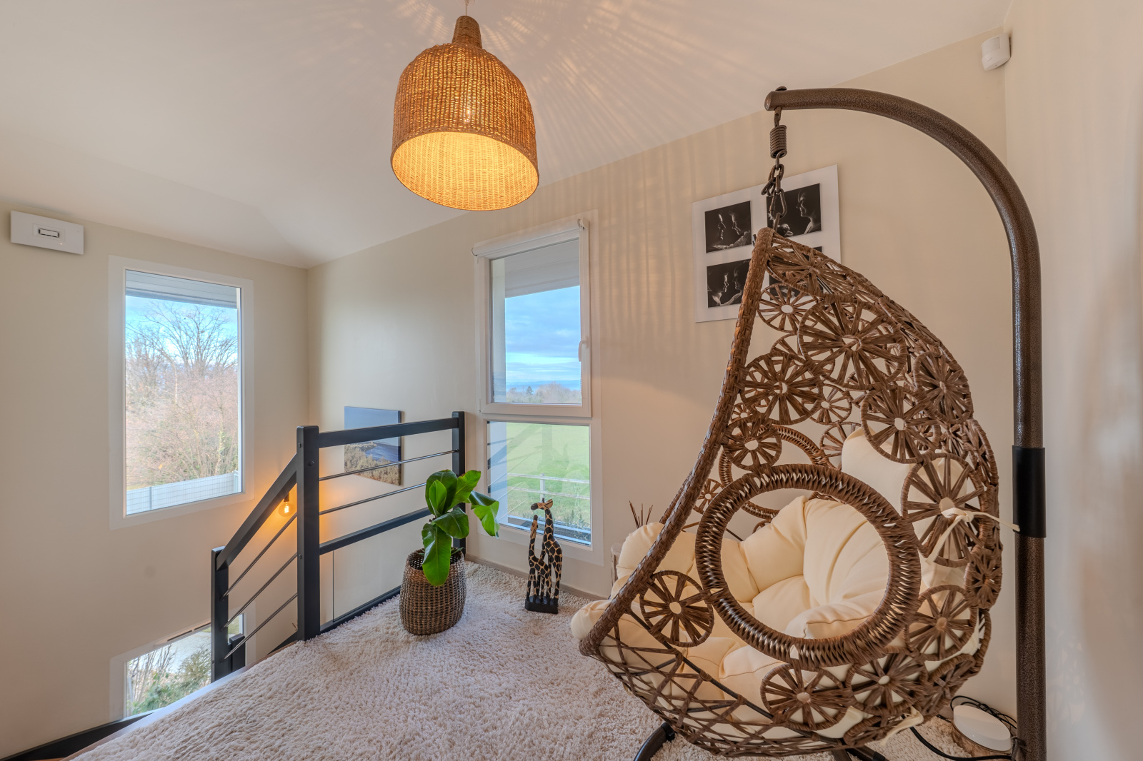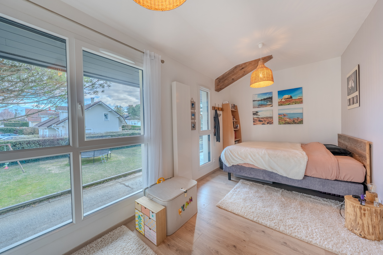 Dans un environnement pavillonnaire privilégié et particulièrement recherché, cette maison récente de 2020 offre un cadre de vie rare, conjuguant vue lac, calme et élégance contemporaine. Dès l’entrée, les volumes et le côté chaleureux ne pourront que vous séduire. La pièce de vie, chaleureuse et parfaitement agencée, s’ouvre sur une terrasse, sublimée par un poêle à bois invitant à la convivialité.